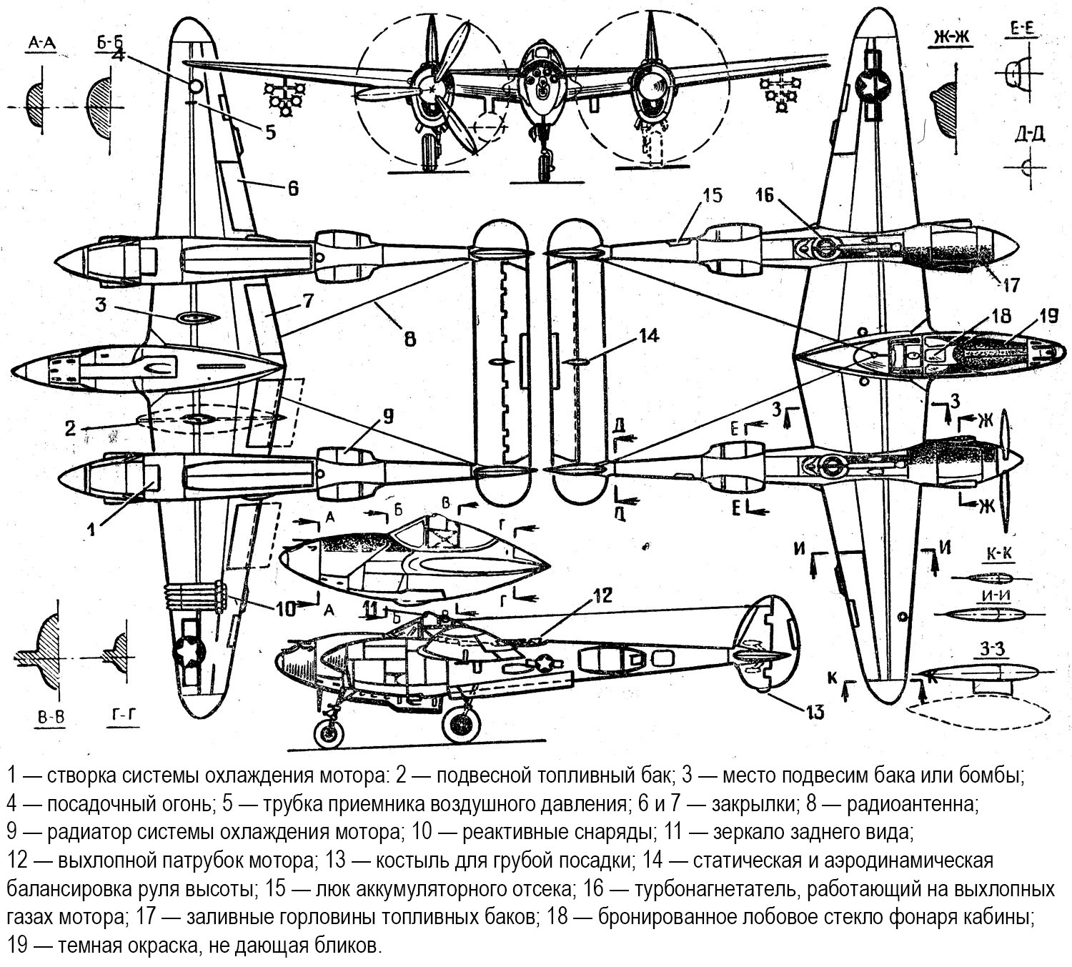 YP-38 обозначение предсерийных самолетов в основном похожих на экспериментальный экземпляр, но с двигателями противоположного вращения Allison V-1710-27/-29 мощностью 1150 л.с.