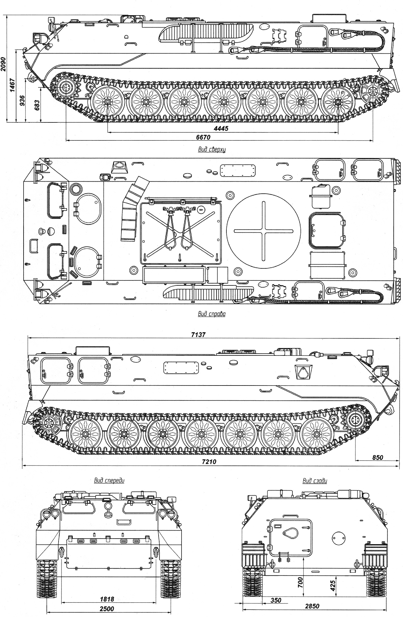 МТ-ЛБу (Объект 10) — удлинённая версия, шасси имеет 7 катков с каждой стороны.