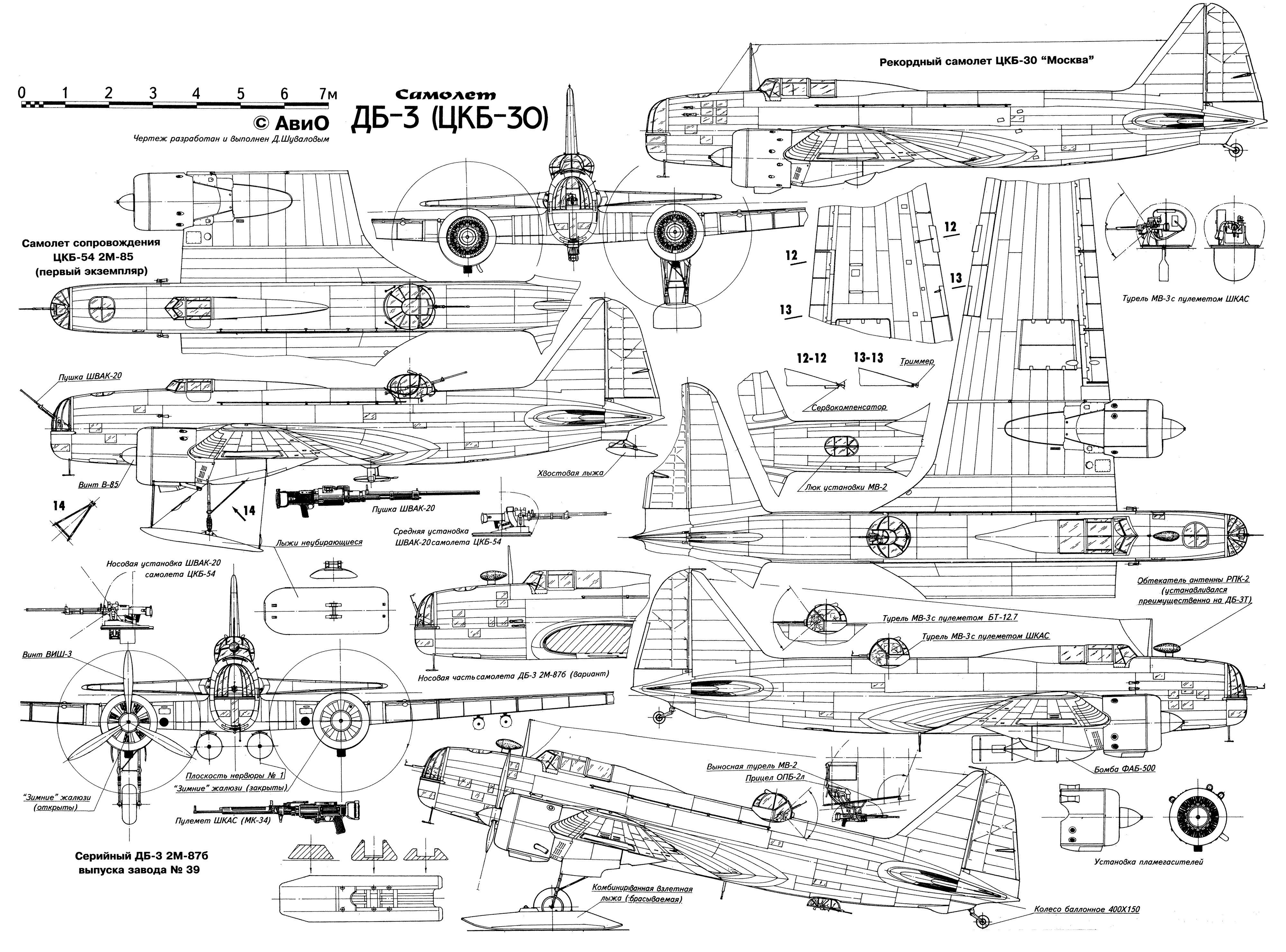 ДБ-3ТП — торпедоносец поплавковый, 1938. Изготовлена и испытана одна опытная машина.