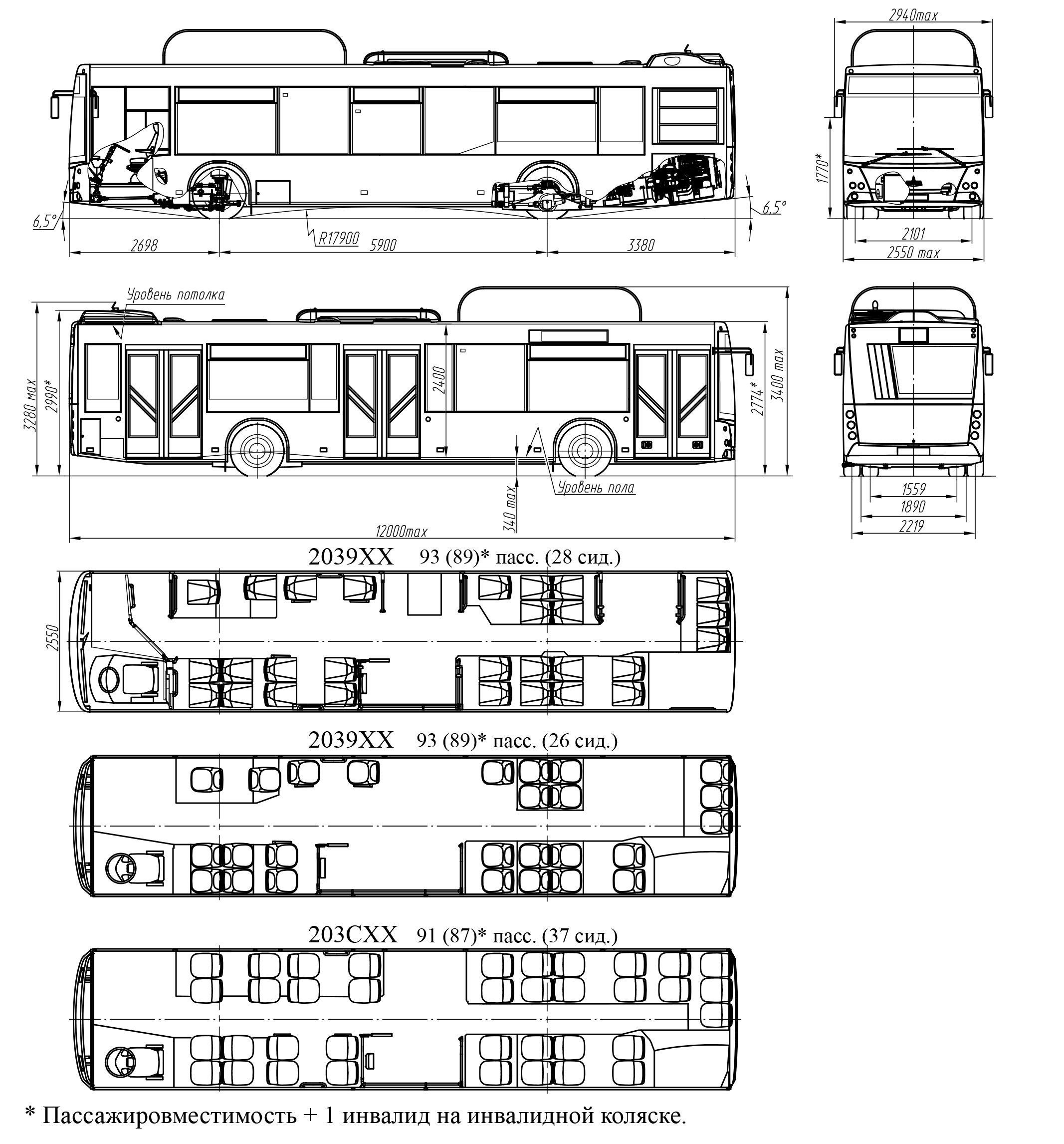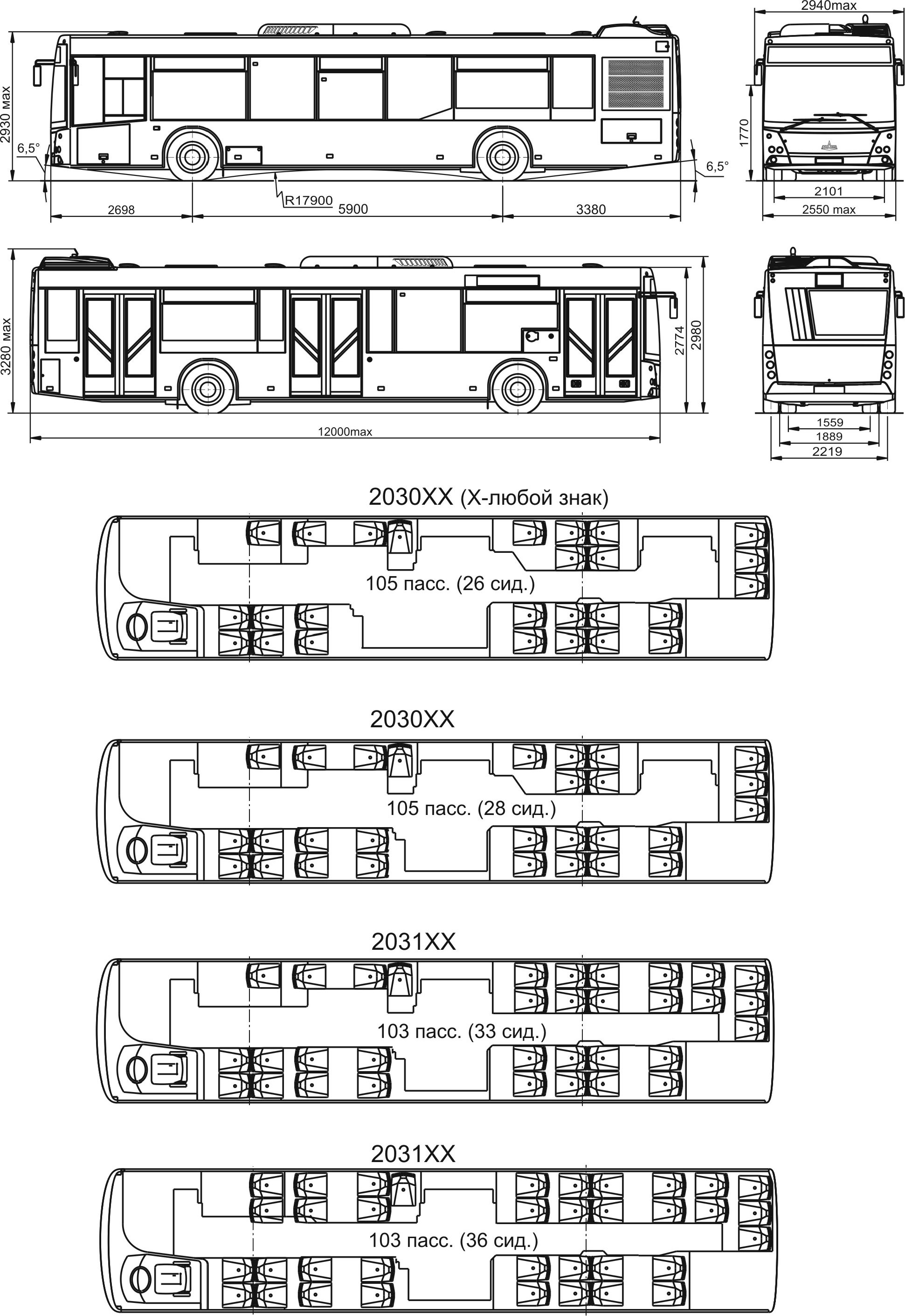 Формула дверей 2-2-2 (2-2-0 в МАЗ-203С)