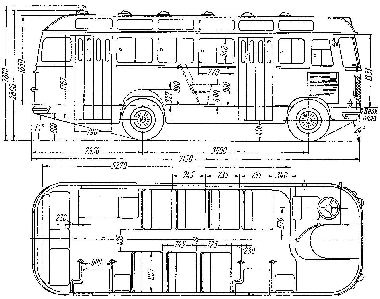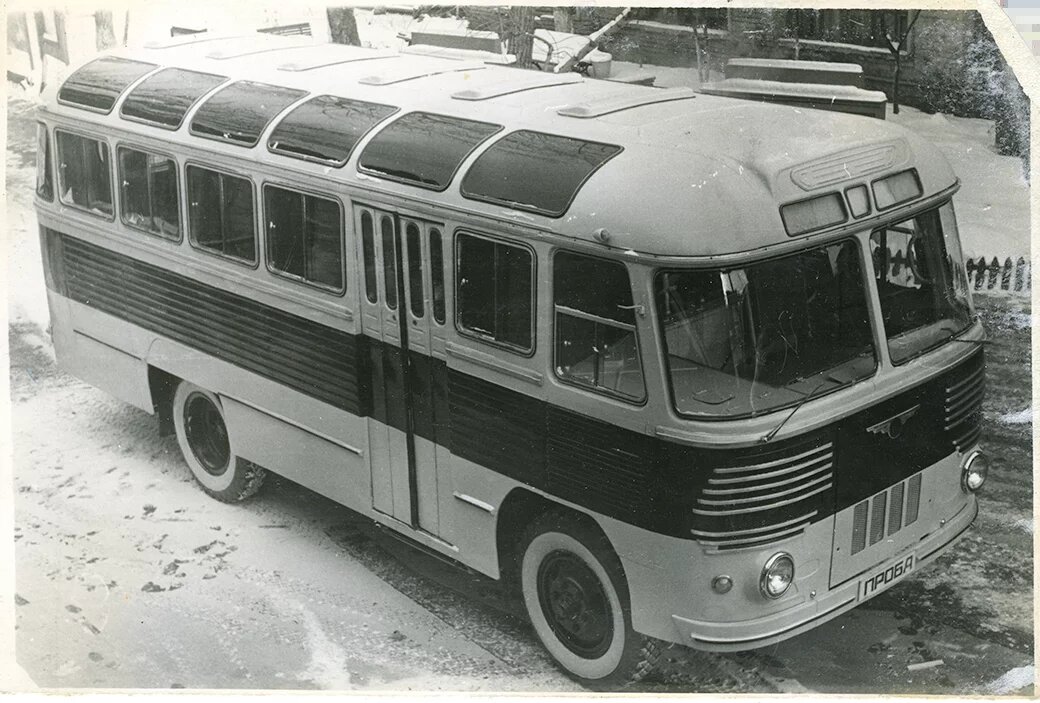 ПАЗ-652Т — туристический вариант с однодверным кузовом, в серию не пошёл.
