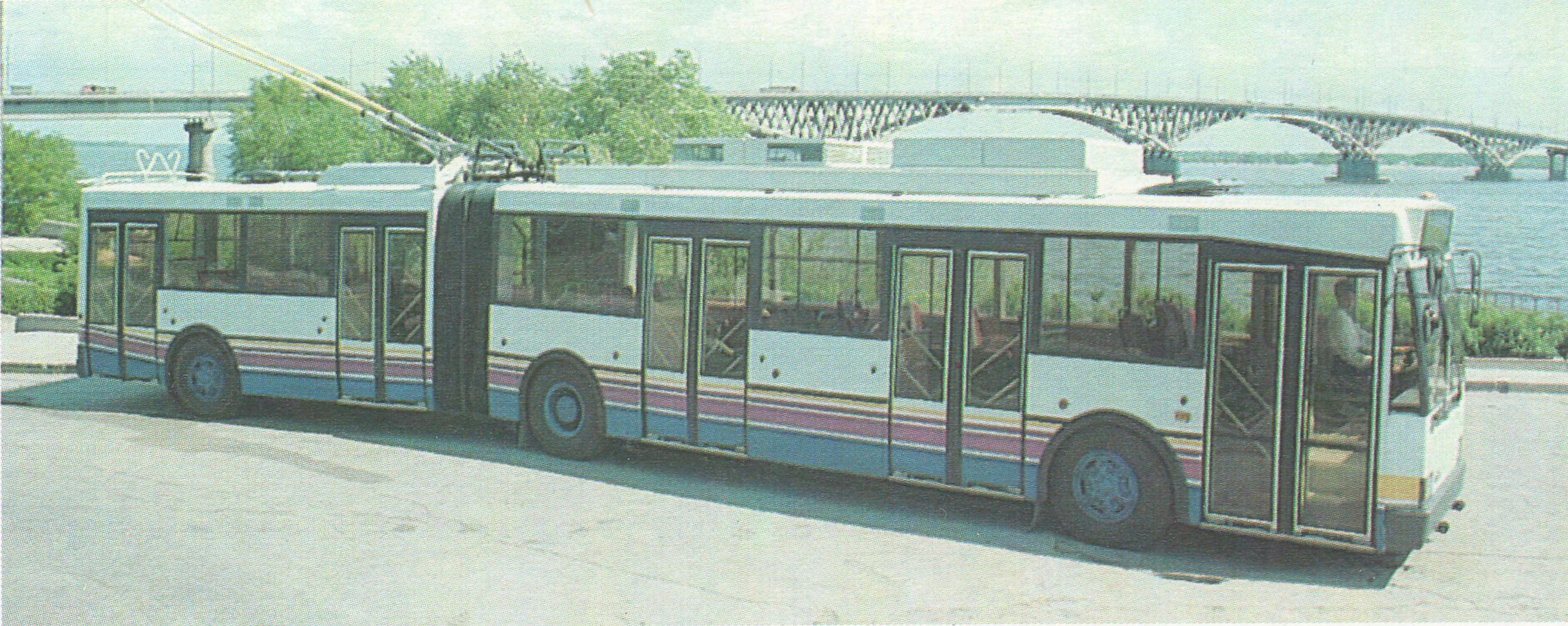 Экспериментальный, сочленённый, пятидверный троллейбус. Серийное производство не было начато из-за необходимости импортного и дорогостоящего электрооборудования.