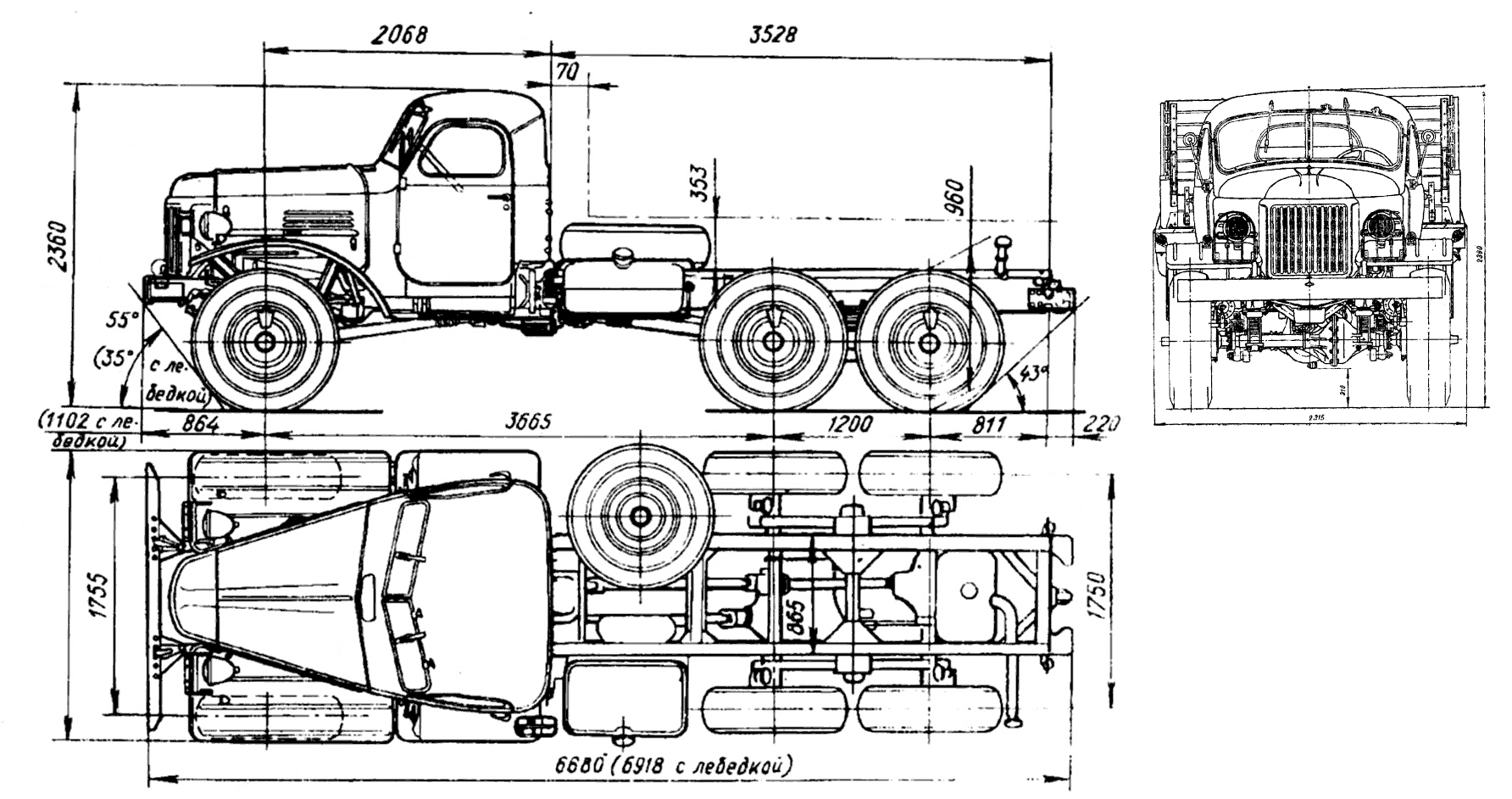 Передаточные числа раздаточной коробки были другими, как на ЗИС-151: 1-я передача 2,44; 2-я передача 1,24.